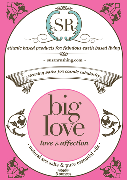 Big Love Bath Salts are made during a new moon and cured with Smoky Quartz, Rose Quartz, Carnelian and Clear Quartz crystals.The only thing that’s real is love. We all need big love, whether it is from ourselves or someone else. Your heart may need a little healing, or perhaps you have lost connection with your inner goddess of love. Draw a nice warm bath and add half of this packet, call in Archangel Chamuel and Archangel Raphael and feel the Big Love wash over you.