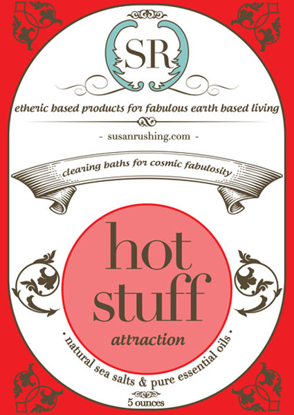 Hot Stuff bath salts are made during a waxing moon and cured with Smokey Quartz, Clear Quartz, Red Jasper, Lodestone and Garnet crystals.
